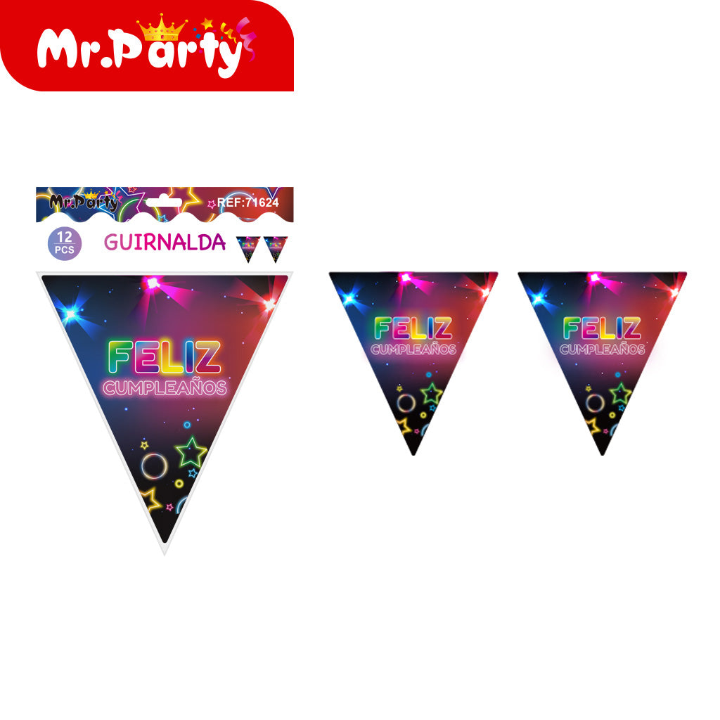 banderín de neón t122 con texto en español "feliz cumpleaños (12paquetes)