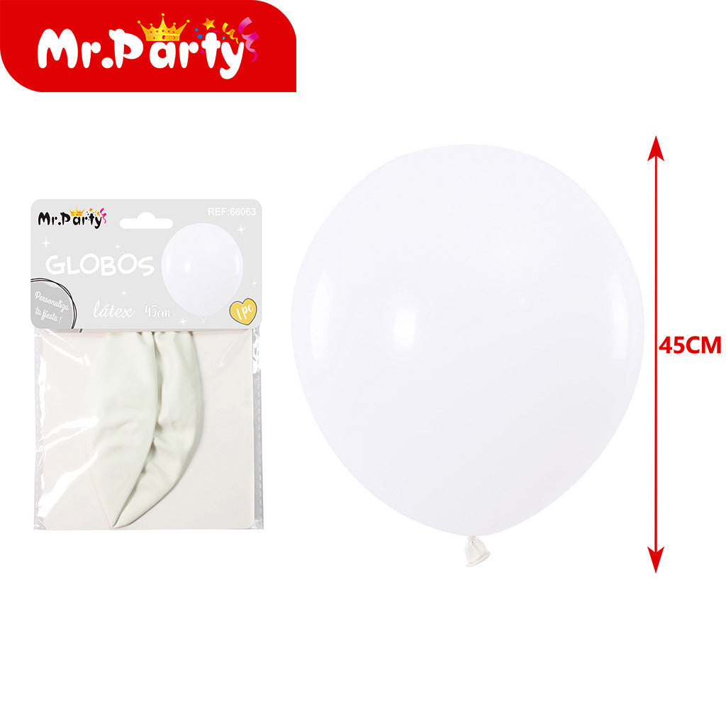 Blanco mate de 18 pulgadas. Ideal para complementar la decoración y darle un toque especial al evento. Se venden en paquetes de máximo 12 unidades.