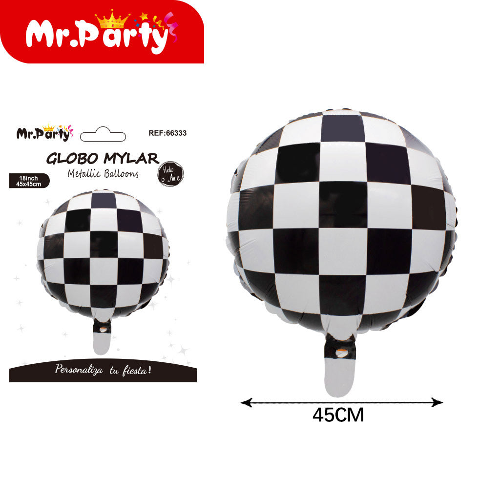 Bola de tablero de ajedrez de 18 pulgadas. Ideal para complementar la decoración y darle un toque especial al evento. Se venden en paquetes de máximo 12 unidades.