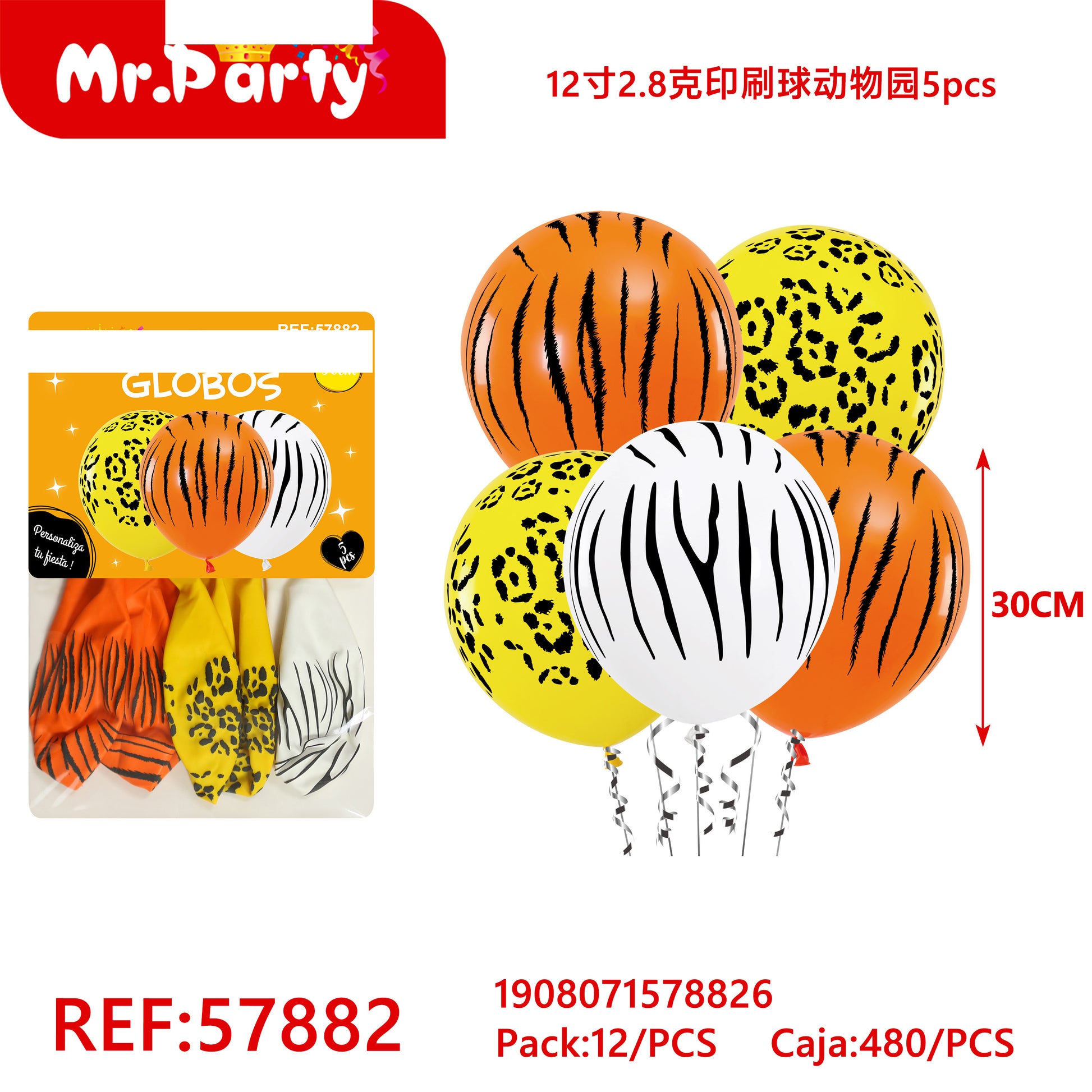 Bolas de zoológico impresas de 12 pulgadas y 28 g 5 piezases (12paquetes)