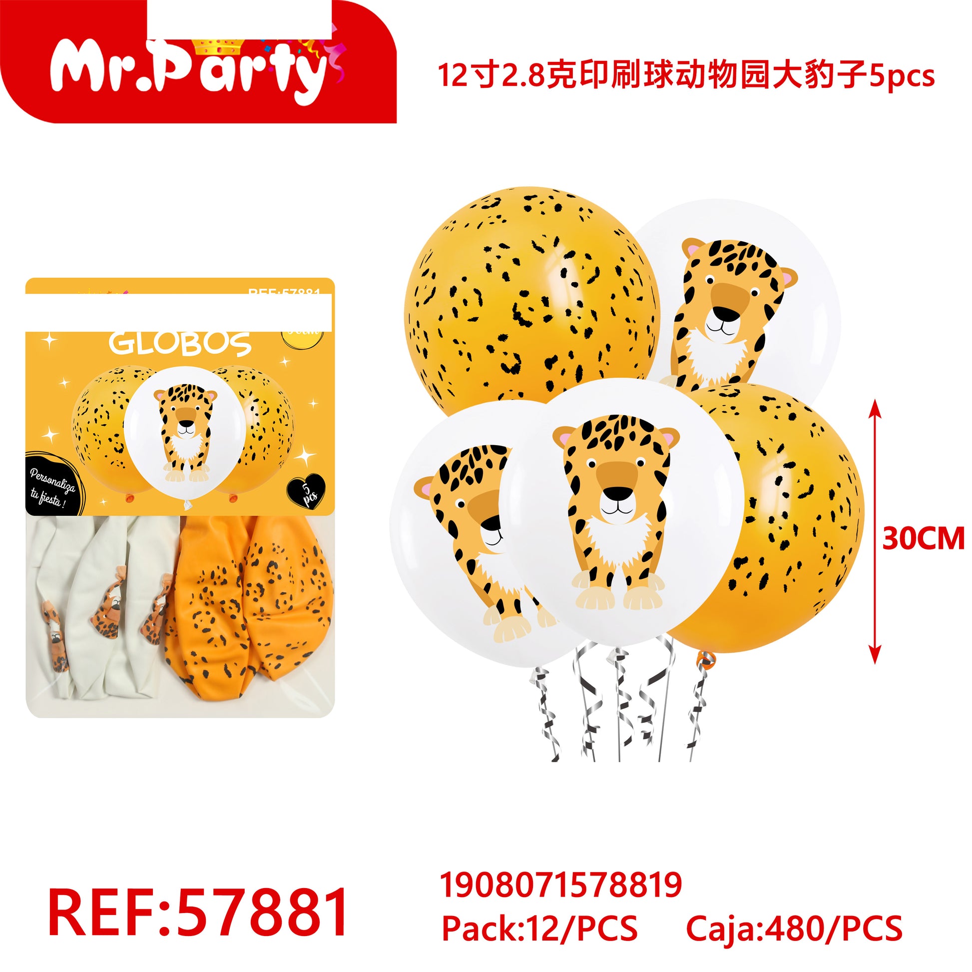 Bolas de zoológico impresas de 12 pulgadas y 28 g 5 piezases (12paquetes)