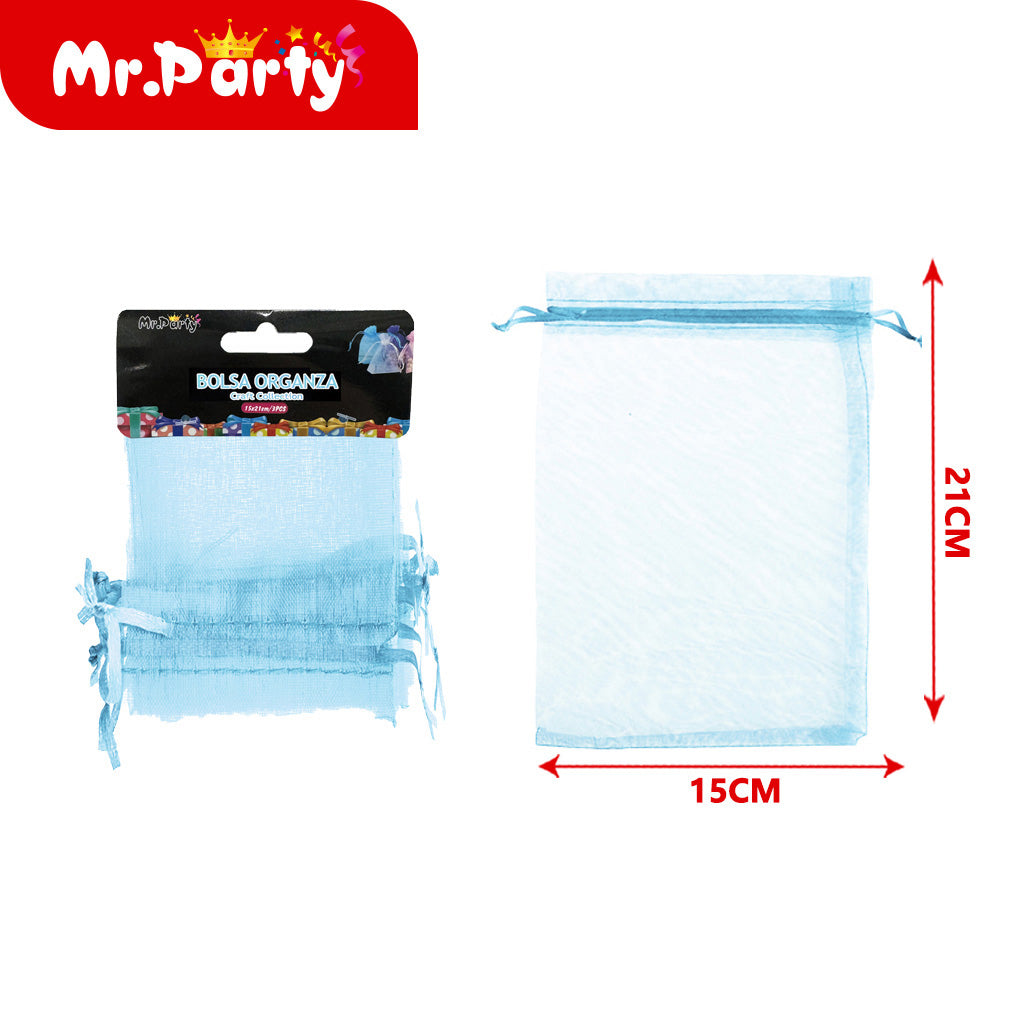Bolsa de gasa de 15 x 21 cm 3 piezases color azul claro. Ideal para complementar la decoración y darle un toque especial al evento. Se venden en paquetes de máximo 12 unidades.