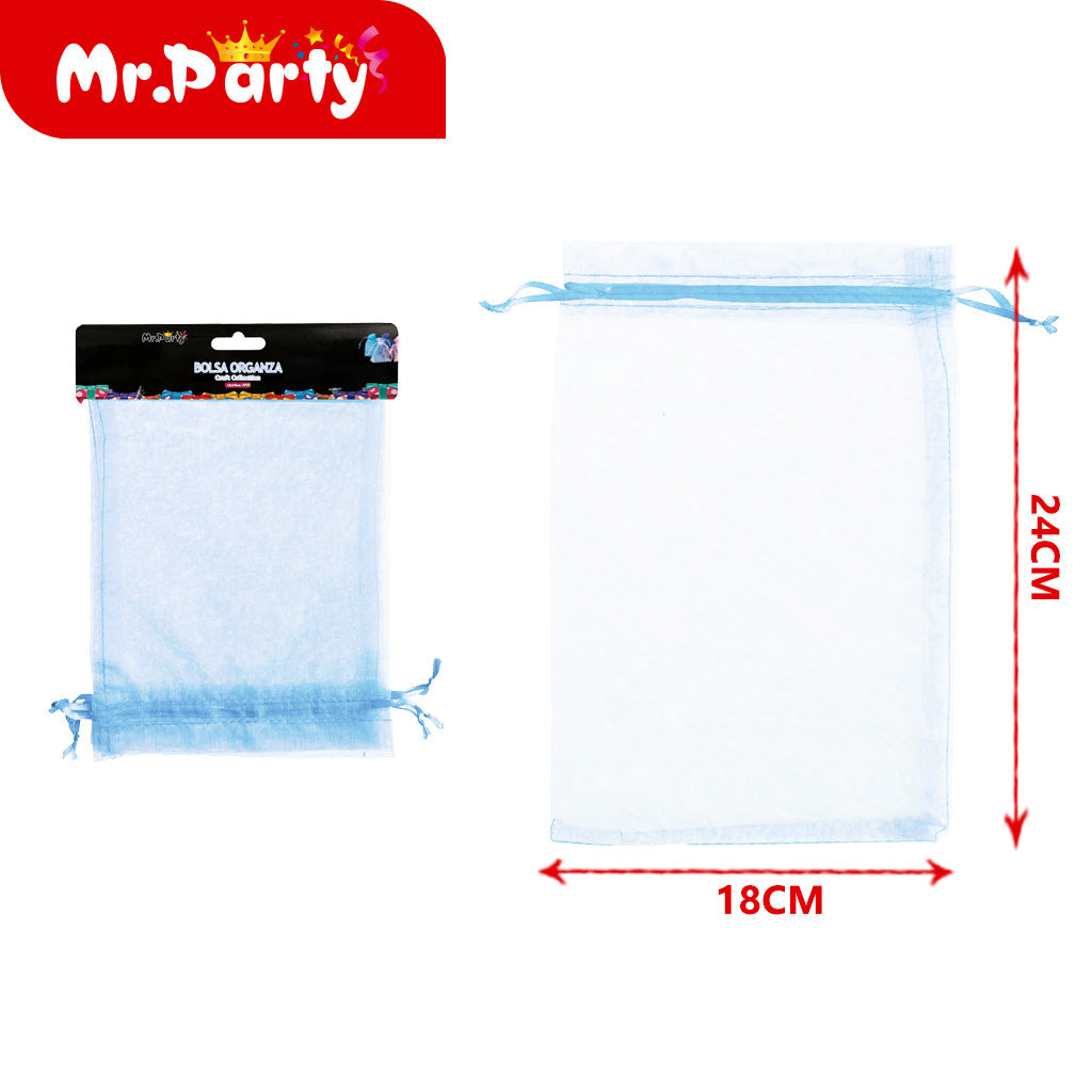 Bolsa de gasa de 18 x 24 cm 3 piezases color azul claro. Ideal para complementar la decoración y darle un toque especial al evento. Se venden en paquetes de máximo 12 unidades.