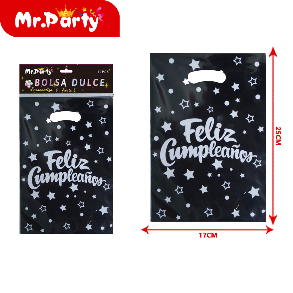 Bolsa de película de aluminio con diseño de estrella negra y. Ideal para complementar la decoración y darle un toque especial al evento. Se venden en paquetes de máximo 12 unidades.