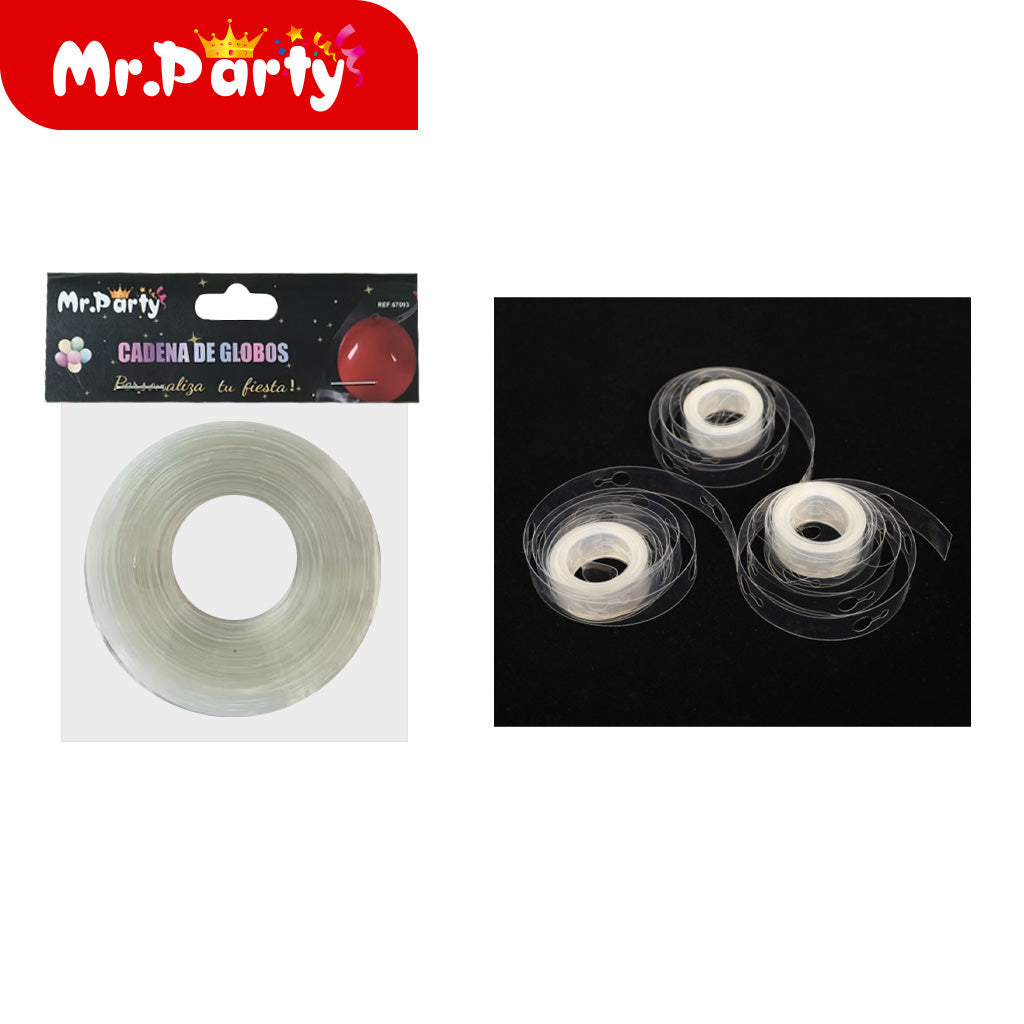 Cadena de globos transparente de doble agujero de 125 m y 15. Perfectos para decorar fiestas y celebraciones especiales. Se venden en paquetes de máximo 12 unidades.