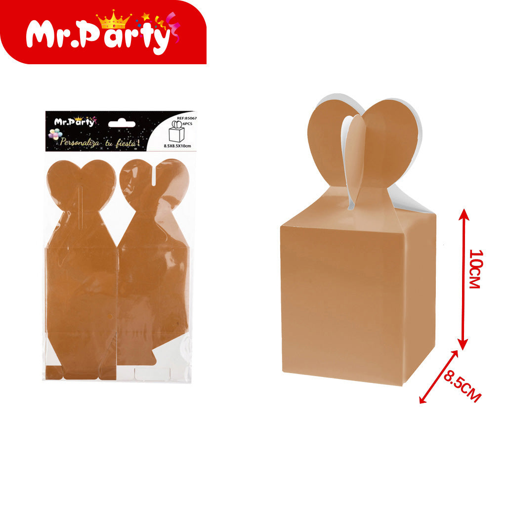 Cajas de dulces (6 piezas) impresas en dorado. Ideal para complementar la decoración y darle un toque especial al evento. Se venden en paquetes de máximo 12 unidades.