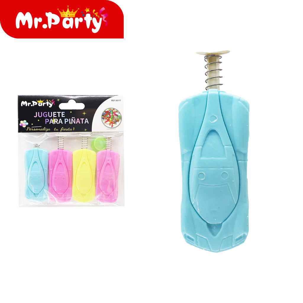 Carro de resorte 4 piezas/tarjeta. Ideal para complementar la decoración y darle un toque especial al evento. Se venden en paquetes de máximo 12 unidades.