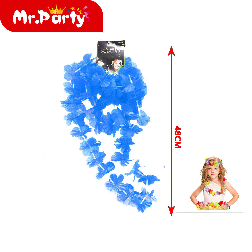 Conjunto de diadema y pulsera con guirnalda de pétalos fluor. Ideal para complementar la decoración y darle un toque especial al evento. Se venden en paquetes de máximo 12 unidades.
