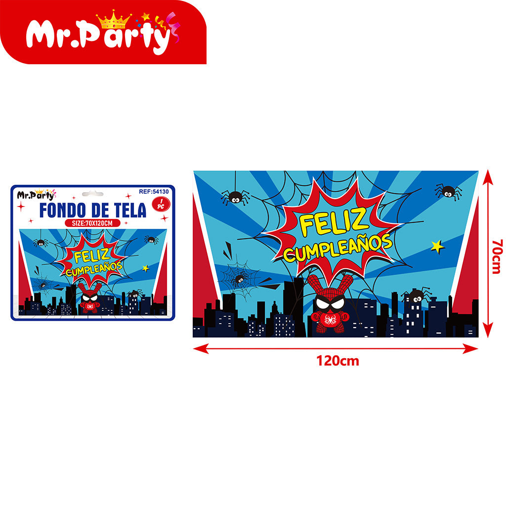 Fondo de tela de spider-man para cumpleaños en español 120 x (12paquetes)