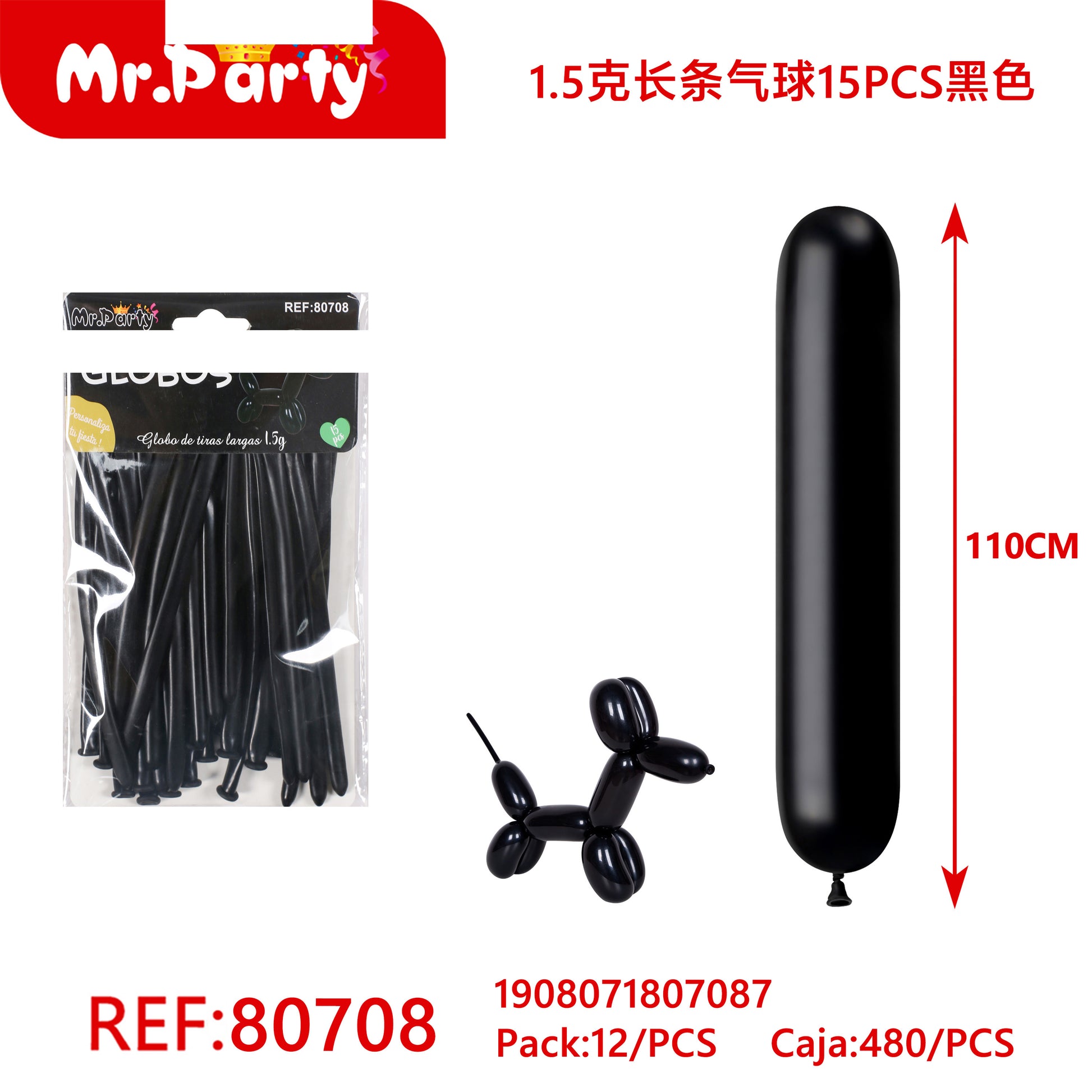 Globo largo de 15 g 15 piezases color negro (12paquetes)