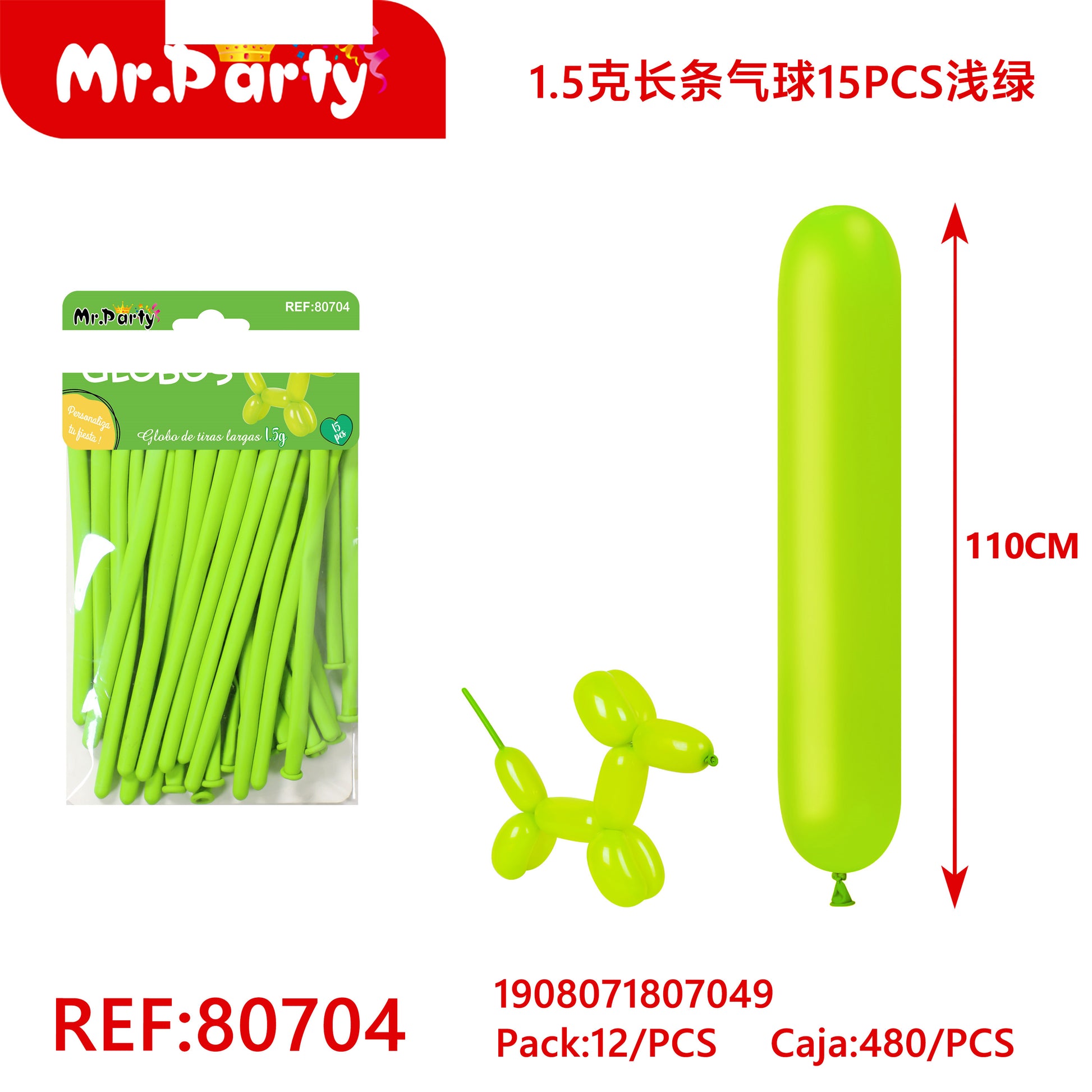 Globo largo de 15 g 15 piezases color verde claro (12paquetes)