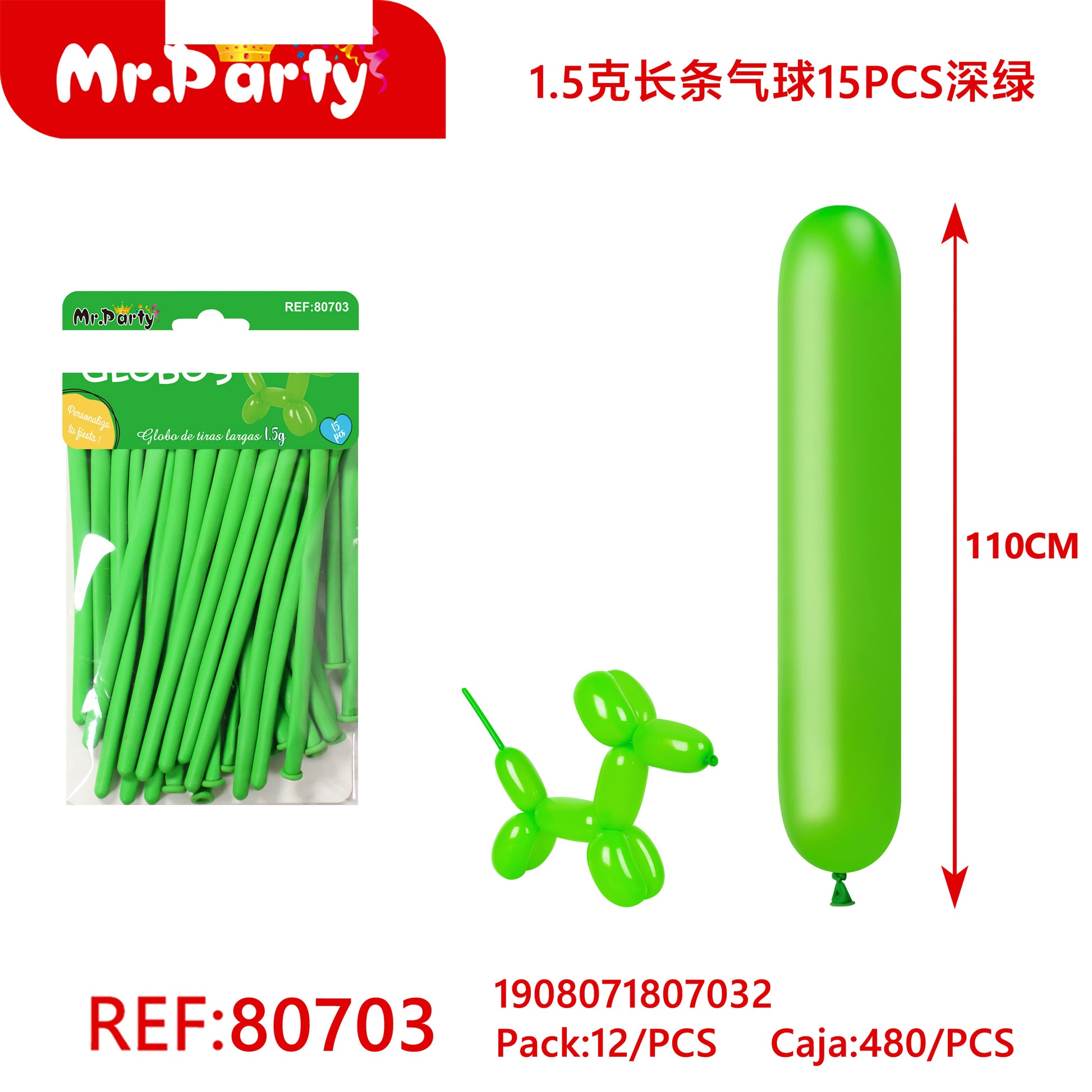 Globo largo de 15 g 15 piezases color verde oscuro (12paquetes)