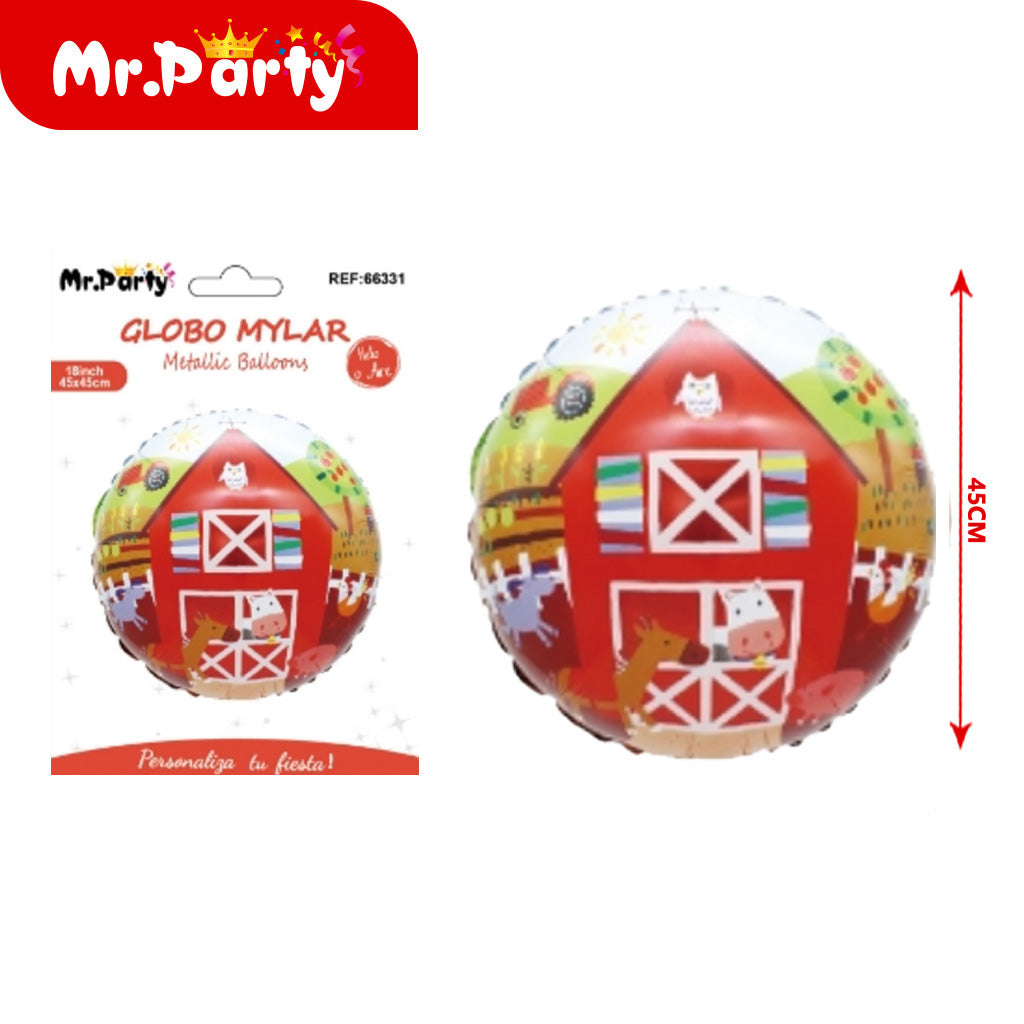 Granja redonda de 18 pulgadas. Ideal para complementar la decoración y darle un toque especial al evento. Se venden en paquetes de máximo 12 unidades.