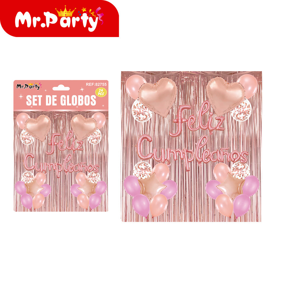 Juego de 22 piezas de seda de lluvia en oro rosa. Ideal para complementar la decoración y darle un toque especial al evento. Se venden en paquetes de máximo 12 unidades.