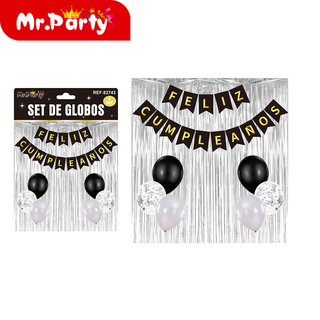 Juego de 8 piezas de seda de lluvia plateada. Ideal para complementar la decoración y darle un toque especial al evento. Se venden en paquetes de máximo 12 unidades.
