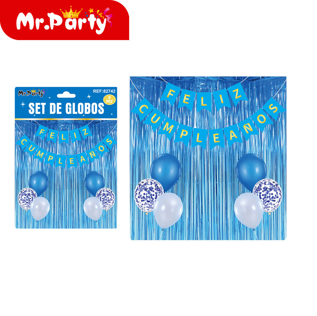 Juego de 8 piezas de seda para la lluvia azul oscuro. Ideal para complementar la decoración y darle un toque especial al evento. Se venden en paquetes de máximo 12 unidades.