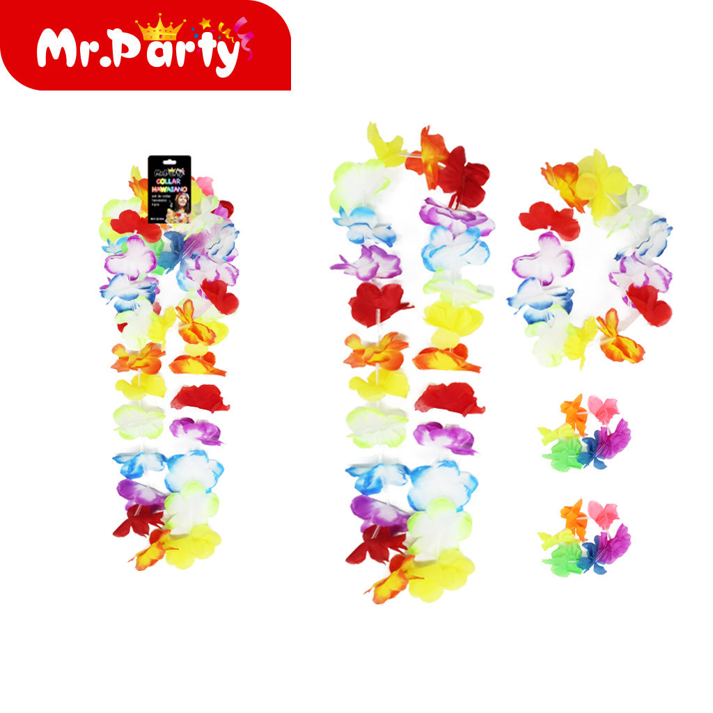 Juego de diadema y pulsera con corona de pétalos de 24 pares. Ideal para complementar la decoración y darle un toque especial al evento. Se venden en paquetes de máximo 12 unidades.