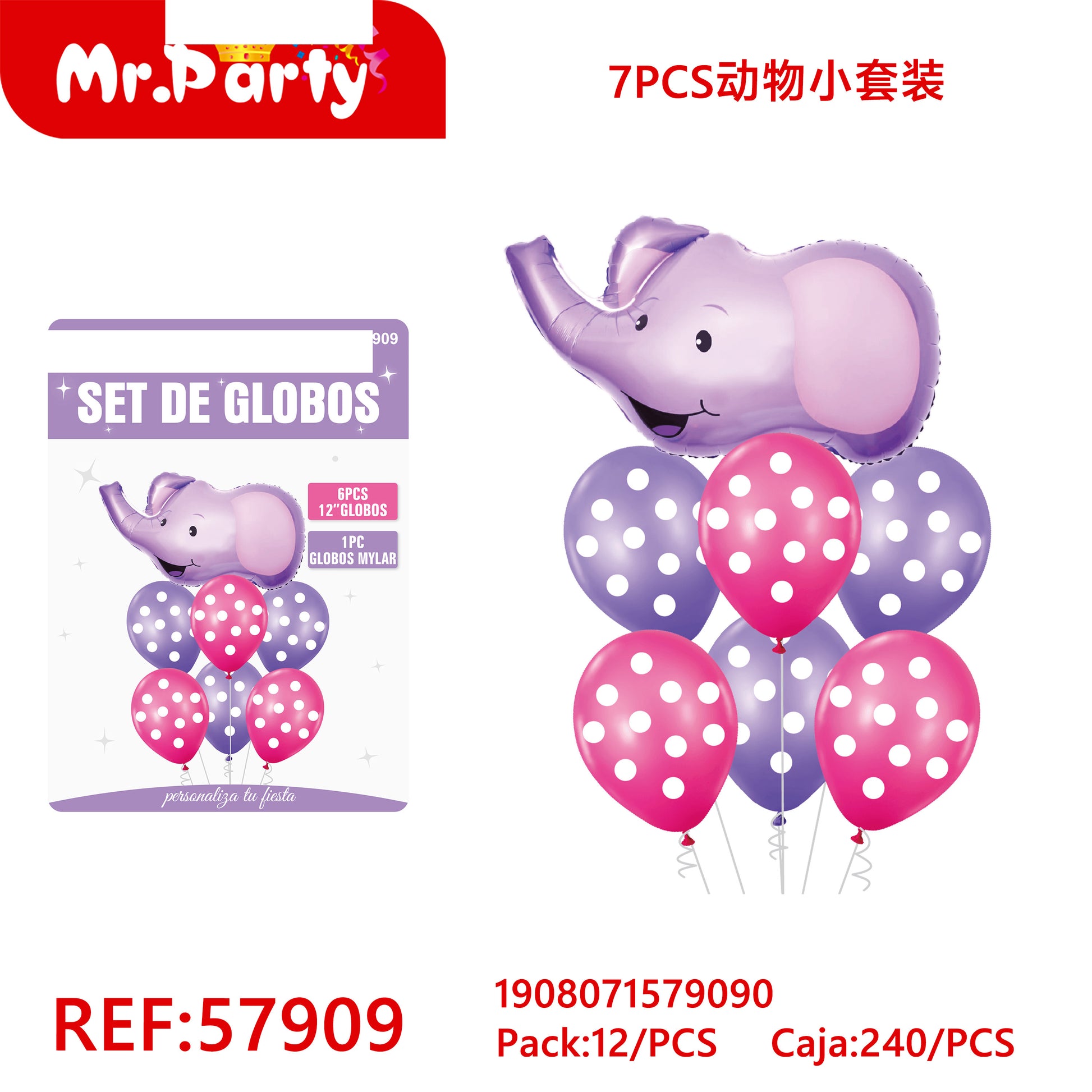 Juego pequeño de 7 animales. Ideal para complementar la decoración y darle un toque especial al evento. Se venden en paquetes de máximo 12 unidades.