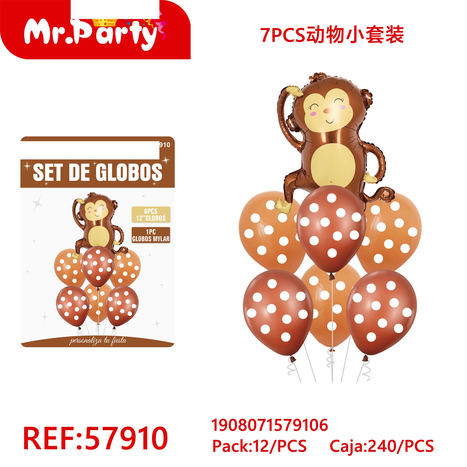 Juego pequeño de 7 animales. Ideal para complementar la decoración y darle un toque especial al evento. Se venden en paquetes de máximo 12 unidades.