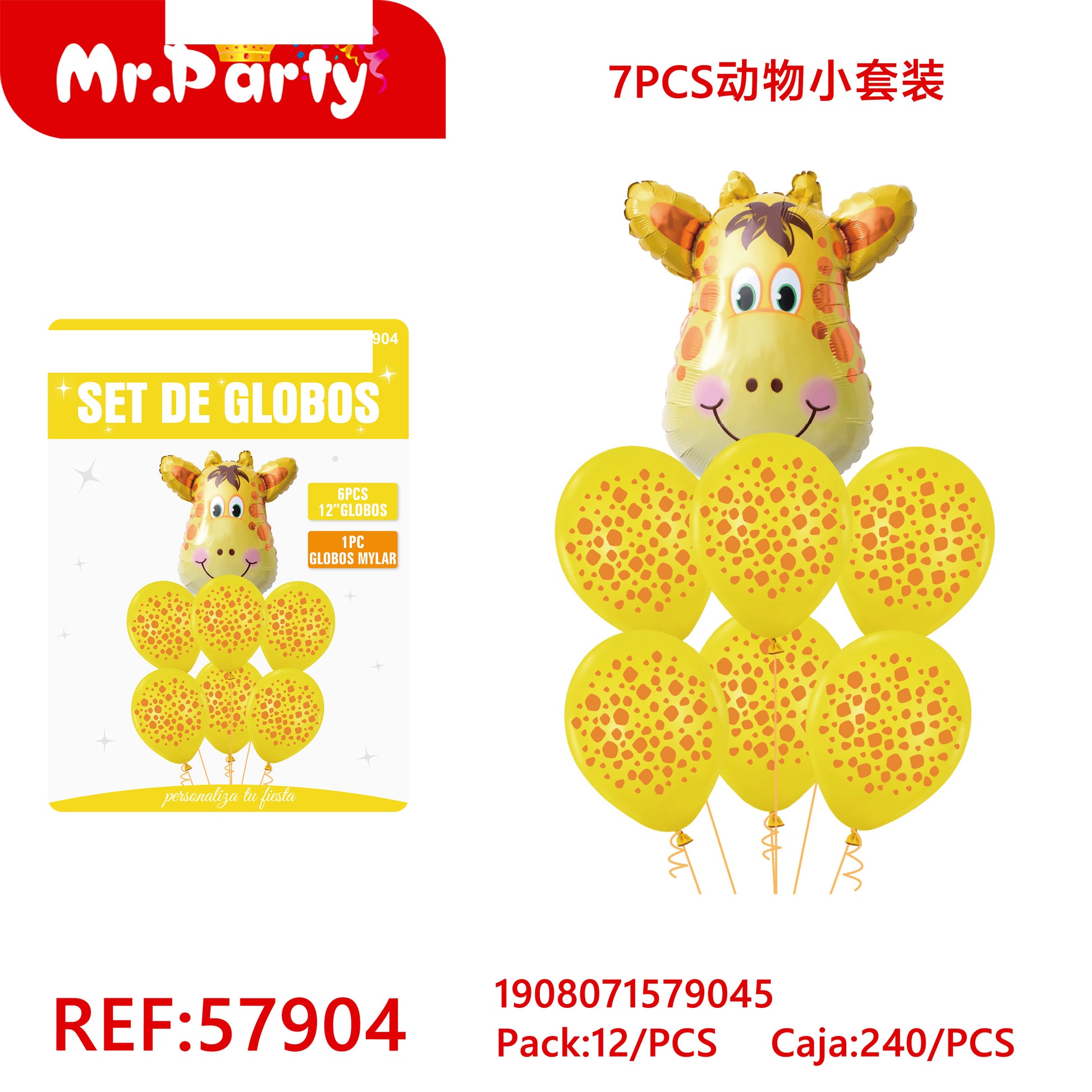 Juego pequeño de 7 animales. Ideal para complementar la decoración y darle un toque especial al evento. Se venden en paquetes de máximo 12 unidades.