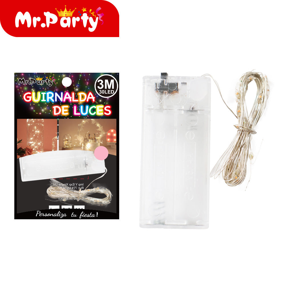 lámpara de alambre de cobre 30l-3m azul plegable tarjeta opp. Ideal para complementar la decoración y darle un toque especial al evento. Se venden en paquetes de máximo 12 unidades.