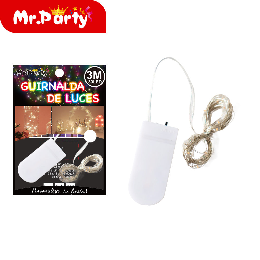 lámpara de filamento de cobre con pila de botón blanca 30l-3. Ideal para complementar la decoración y darle un toque especial al evento. Se venden en paquetes de máximo 12 unidades.