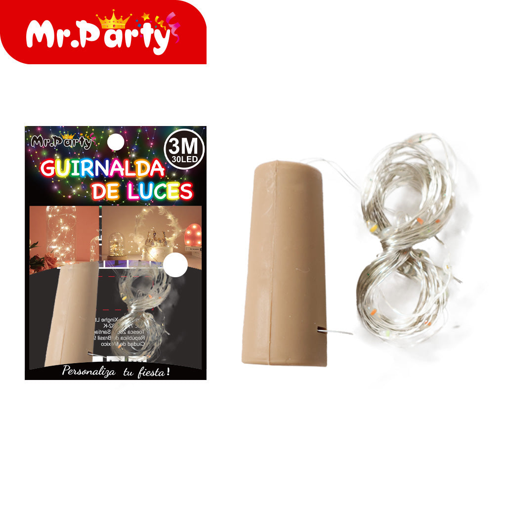 lámpara de filamento de cobre para corcho de botella de vino. Ideal para complementar la decoración y darle un toque especial al evento. Se venden en paquetes de máximo 12 unidades.