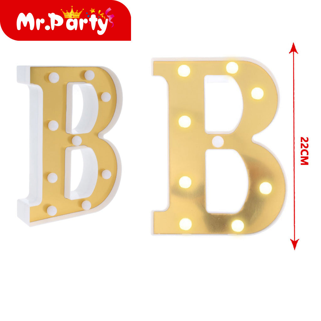 Letra b dorada de 22 cm con luz (12paquetes)