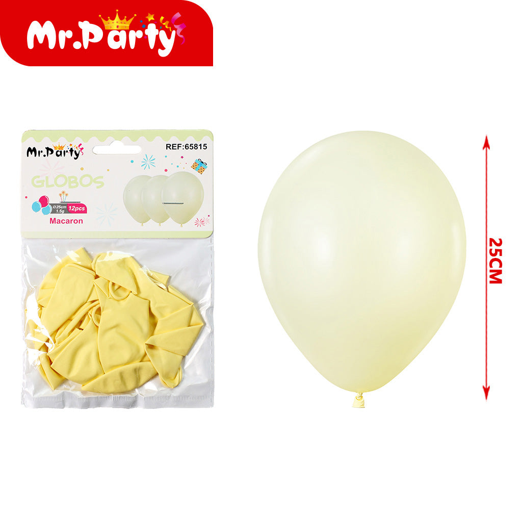 Maca amarilla de 10 pulgadas y 15 g 12 piezases. Ideal para complementar la decoración y darle un toque especial al evento. Se venden en paquetes de máximo 12 unidades.