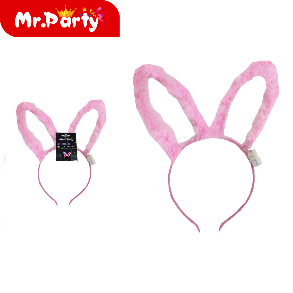Orejas de conejo de plumas de 10 luces. Ideal para complementar la decoración y darle un toque especial al evento. Se venden en paquetes de máximo 12 unidades.