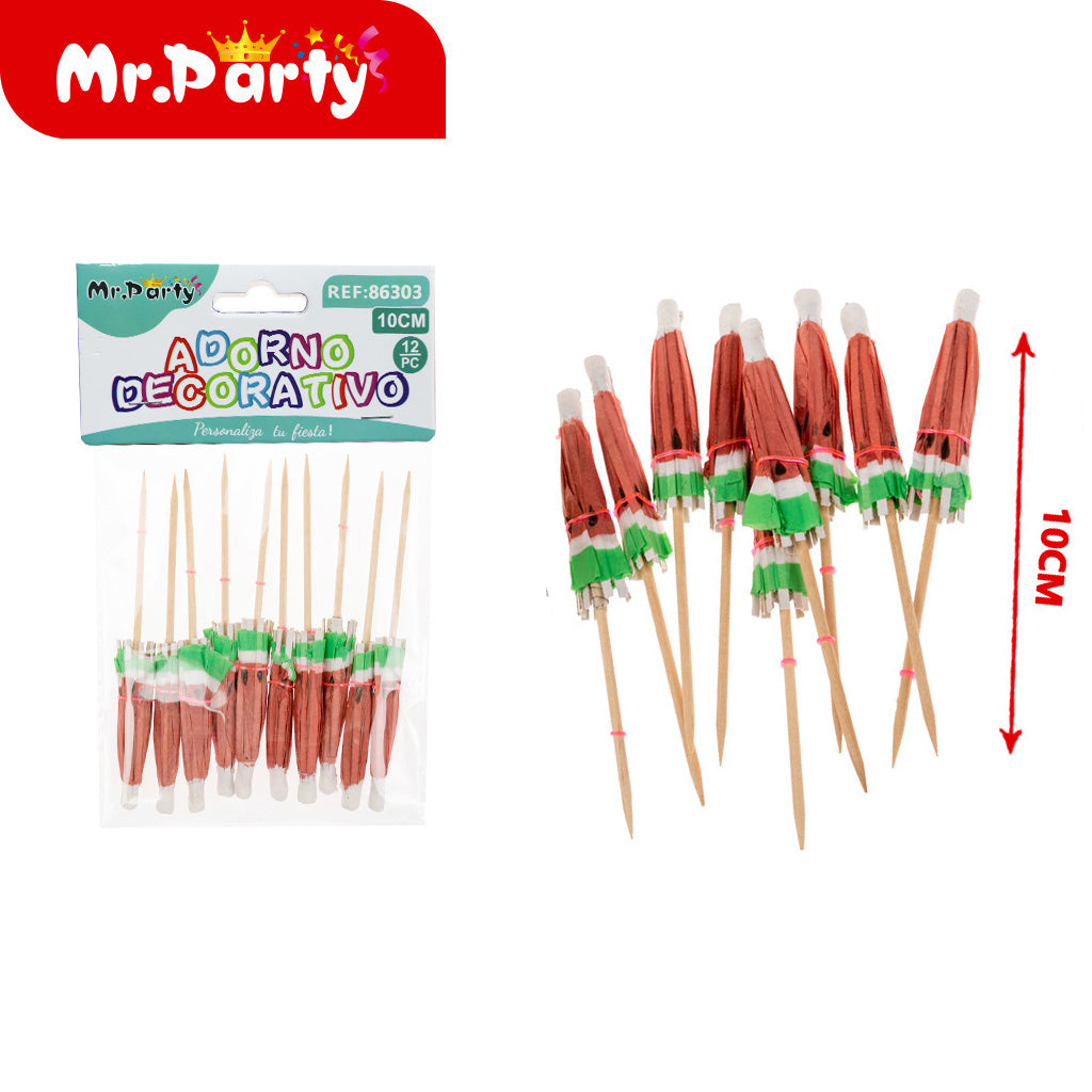 Paraguas con forma de palillo de sandía (10 piezases 10 cm) (12paquetes)