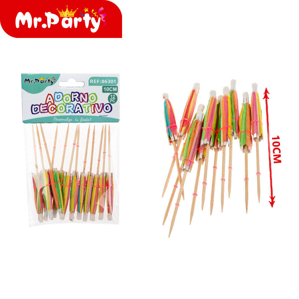 Paraguas octogonal con forma de palillo de dientes (12 pieza. Ideal para complementar la decoración y darle un toque especial al evento. Se venden en paquetes de máximo 12 unidades.