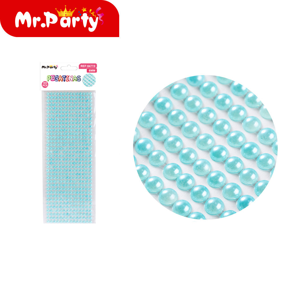 Pegatina de perla de tarjeta grande número 6 azul claro (12paquetes)