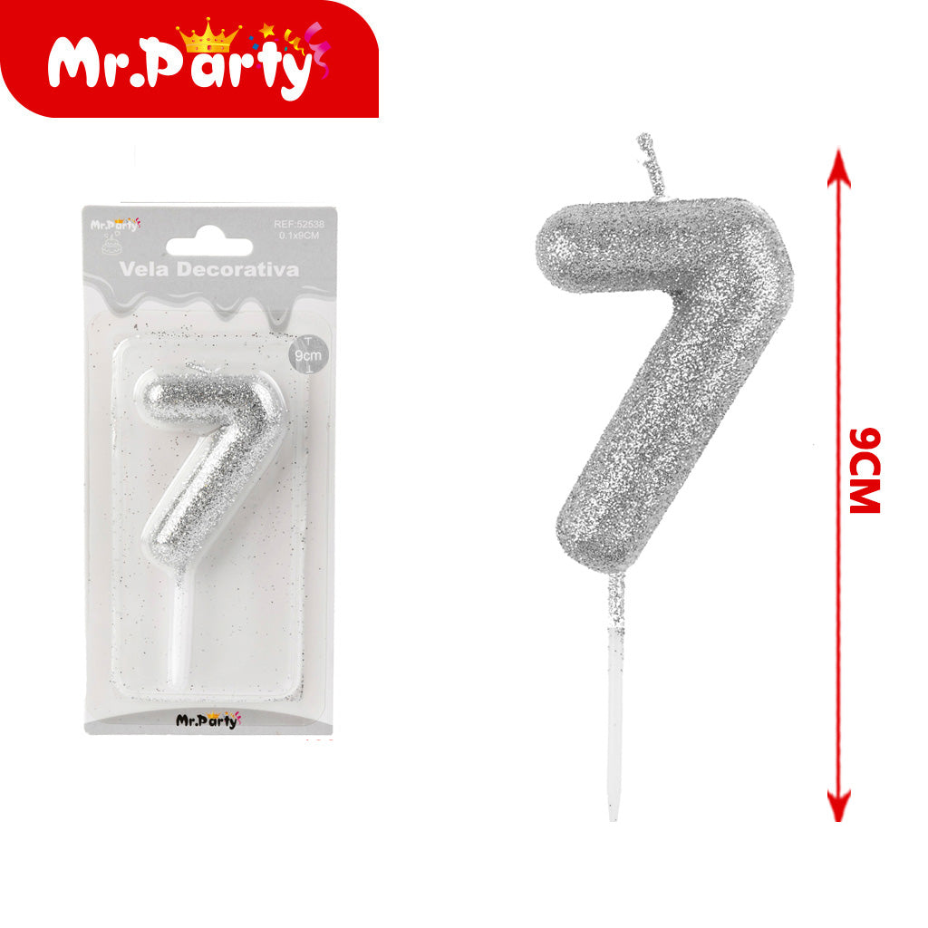 pequeño número 7 de plata en polvo galvanizado de 55 cm. Ideal para complementar la decoración y darle un toque especial al evento. Se venden en paquetes de máximo 12 unidades.