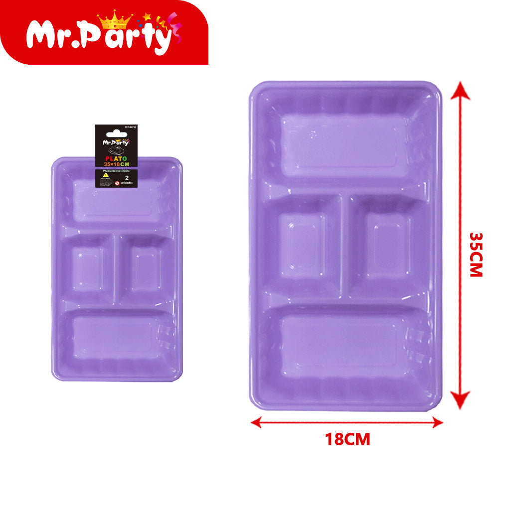 Plato cuadrado de plástico (35 x 18 x 4 cm) rectangular 35 g. Utensilios resistentes y prácticos, ideales para comidas en fiestas y reuniones. Se venden en paquetes de máximo 12 unidades.