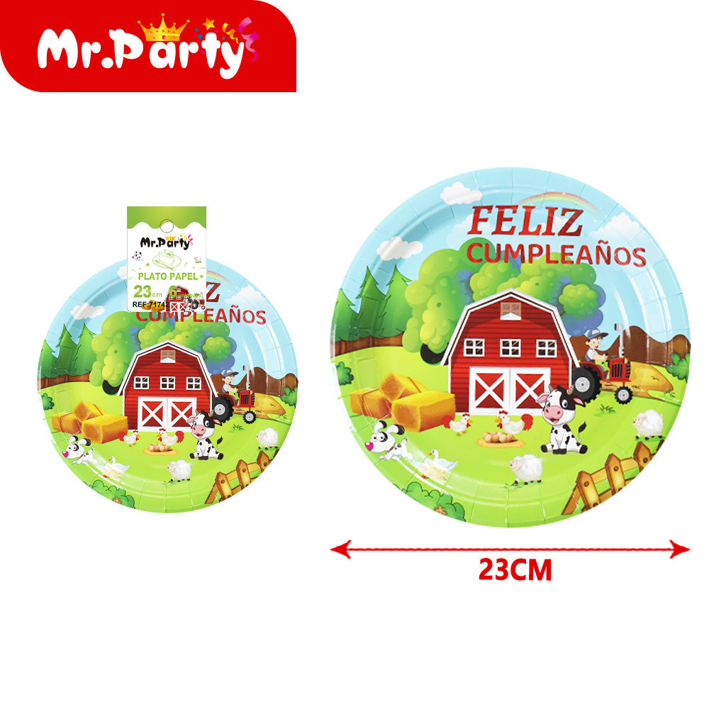 Plato de 9 pulgadas con texto "happy birthday farm" (6 pieza. Utensilios resistentes y prácticos, ideales para comidas en fiestas y reuniones. Se venden en paquetes de máximo 12 unidades.