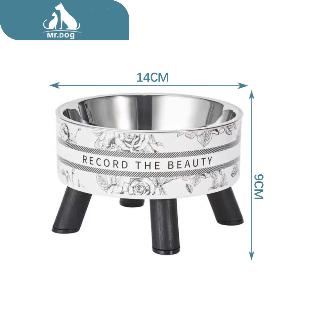 Plato para mascota 1 Plato para mascota alto con diseño de flores retro en caja y acero inoxidable 160 g 35 g 14×14 x 9 paq. con 12 pzas