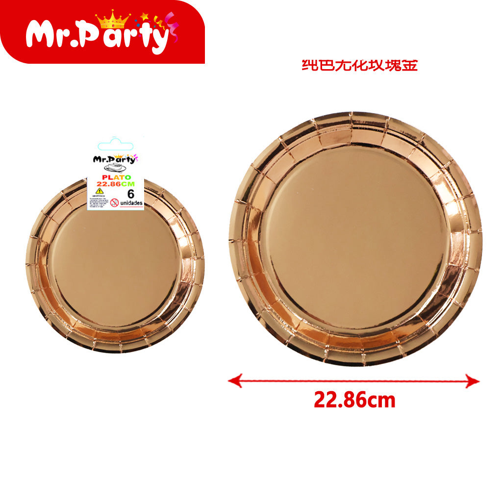 Plato redondo de 9 pulgadas/6 piezas 300 g color solido oro (12paquetes)