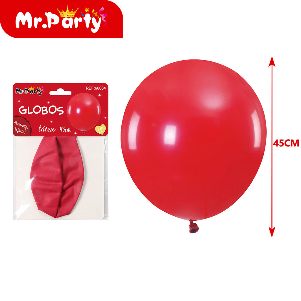 Rojo mate de 18 pulgadas. Ideal para complementar la decoración y darle un toque especial al evento. Se venden en paquetes de máximo 12 unidades.