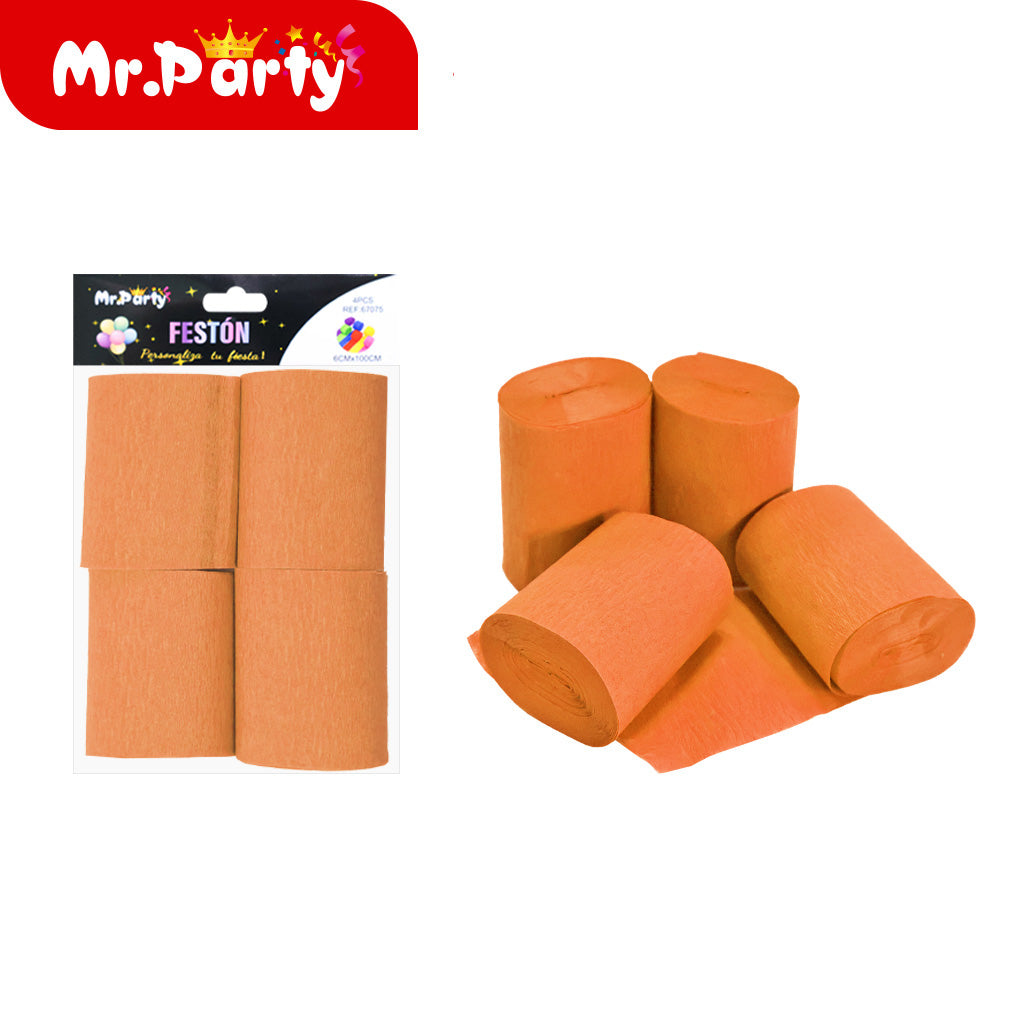 Rollo de papel arrugado de color solido 100 cm x 6 cm 4 piez. Ideal para complementar la decoración y darle un toque especial al evento. Se venden en paquetes de máximo 12 unidades.